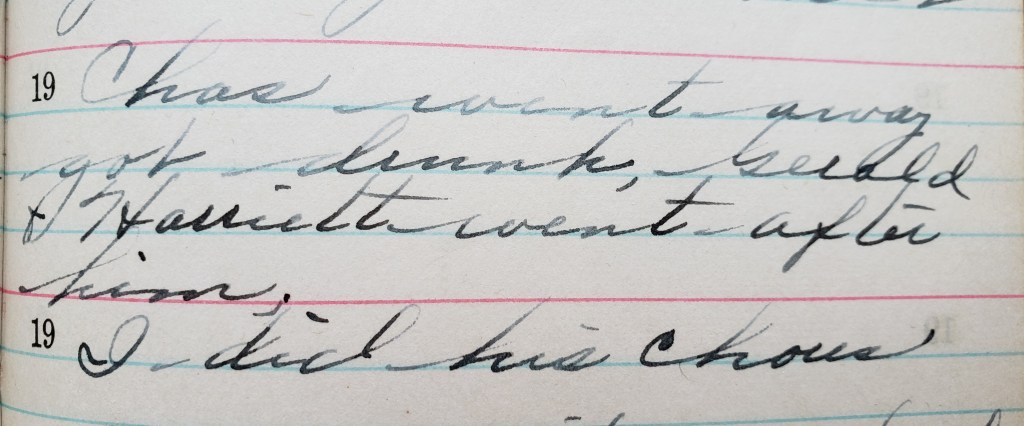 Floyd’s entry from December 4 shows a side of Charles that will replay in future diaries and over many years. “Chas went away got drunk, Gerald & Harriett went after him. I did his chores.”