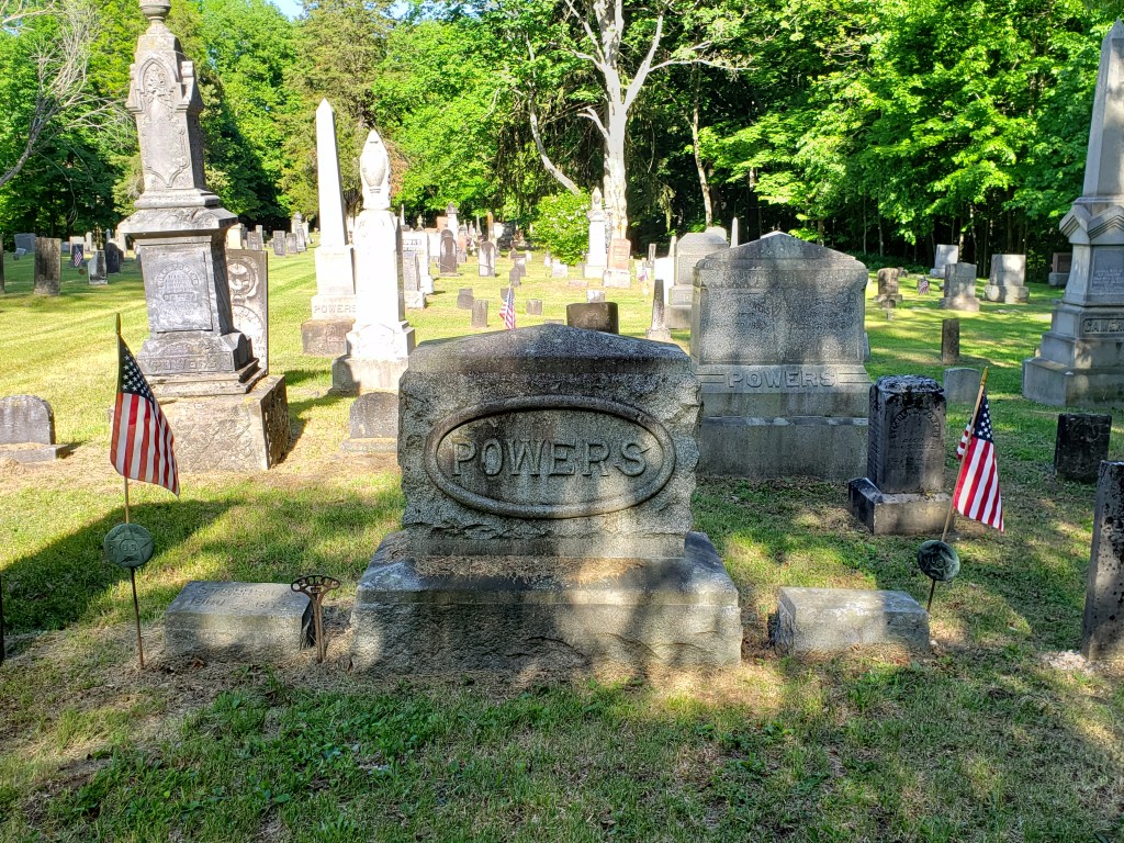 Indeed, Stephen had died 24 years earlier, and he was originally buried in Antrim. About five years after his death, Stephen’s body was moved to his final resting spot among many family members at the Powers Cemetery behind the Powers Church in York Township, Steuben County, Indiana.18
